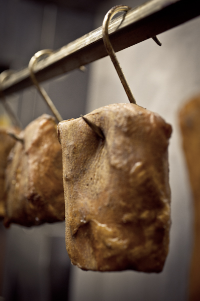 Unsurprisingly, people make pilgrimages to shop at Srodek’s; while I stood in line, I overheard shoppers discuss the hours they’d driven to get there. After I sampled the hunter sausages, whose salty, smoky-rich goodness made me an instant addict, I understood why. The store has attracted national attention as well: third-generation family member Rodney Srodek proudly tells us that food celeb Andrew Zimmern of Travel Channel’s “Bizarre Foods” paid a visit on August 31 (the episode will air sometime in February 2012).
