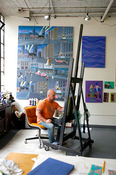 Kevin Stanislawski, aka “Slaw”, in his studio at the Russell Industrial Center