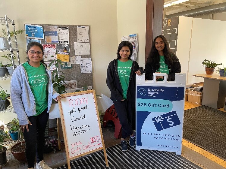 “We also found out that they conduct these vaccine drives to help other people get vaccinated,” says Narla. “The people that get vaccinated are people who have disabilities. But they also may like it if they don’t have transportation to get vaccinated, or they don’t have resources to get vaccinated, or maybe they don’t have health insurance. We were really astonished that there are actually organizations that go to different places in Michigan to help people get vaccinated.”