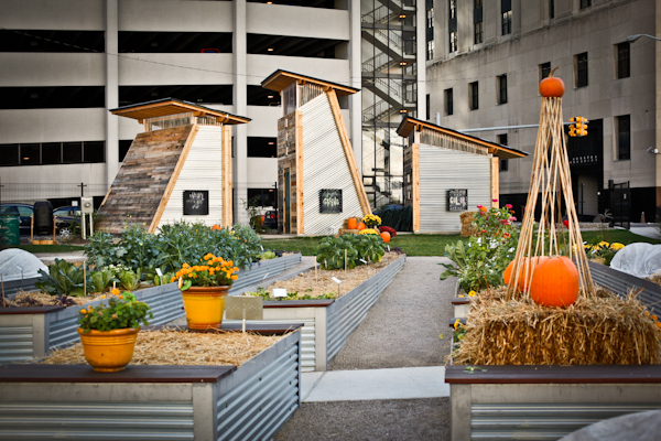 While I wanted to be a hater, and claim that the garden sucks, I’d be a liar. It’s beautiful, relaxing and well designed. I enjoyed the opening, which I was late for, missing all the pomp and circumstance but arriving in time to enjoy the food catered by the Capuchin Soup Kitchen and the lovely sounds of local band Lac La Belle. The gardens are open during the day when a staff person is on site, but due to liability issues, is locked during the evening. Long term plans include having a staff person around more so it will be open more often. The garden is tended by Compuware volunteers, and others from downtown businesses, many folks volunteer briefly while on their lunch break. The produce from the garden goes to Gleaners Community Food Bank.