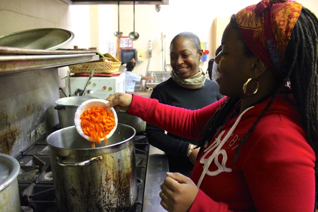 By day, the cafeteria and kitchen of Christ the King Catholic Church is busy preparing lunch in the service of its adjoining K-8 school. Most nights, it’s pretty quiet—sometimes the facilities are used to host fundraisers or other church-related events. But on a Monday in February, a small gathering coalesced for a different purpose: the intersection of healthy eating practices and African heritage.