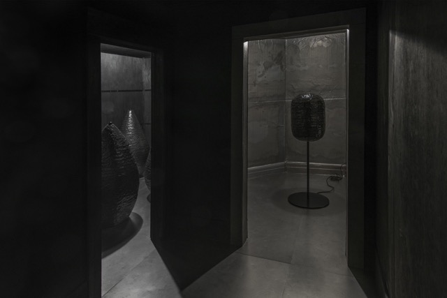 Titled, “Unit 1: 3583 Dubois,” the work by Anders Ruhwald recreates the a Detroit building’s identity through a series rooms and corridors. “Using charred wood, ash, molten glass, found objects, and black-glazed ceramics, Ruhwald meticulously composes an immersive, richly sensorial experience that is at once dramatic, nostalgic, and uncanny,” says a description on MOCA’s website.