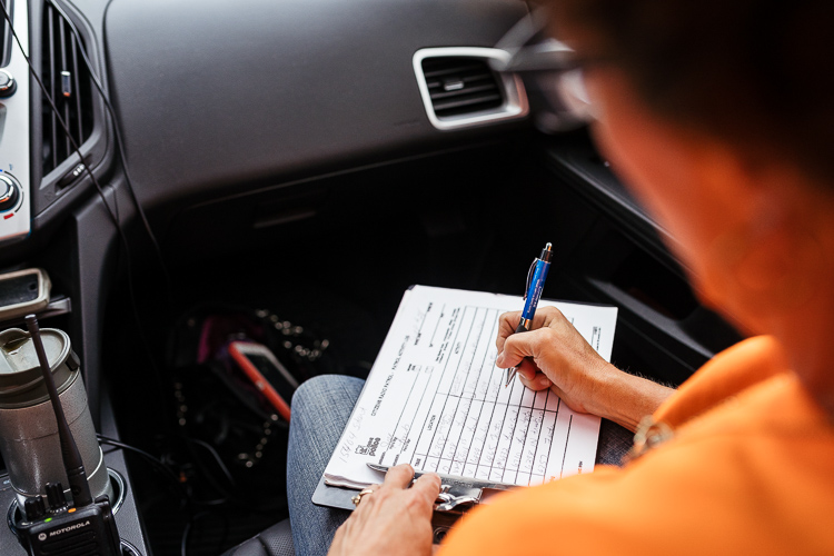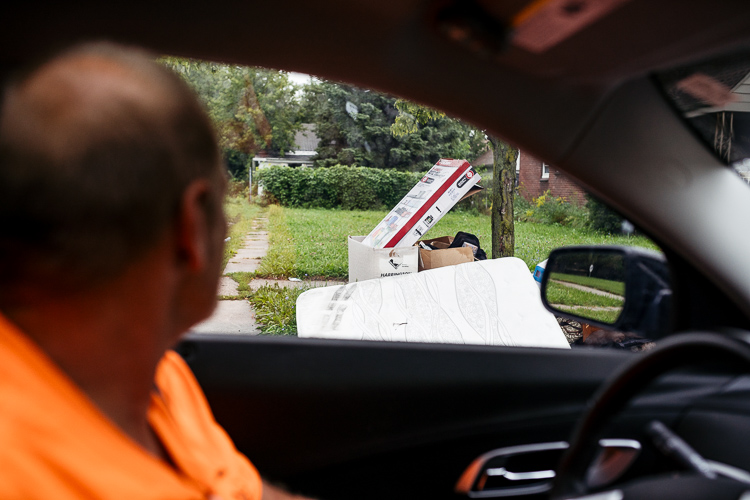 On a Thursday morning in September, their patrol is fairly quiet. The most prolific issue they document is bulk trash put out on a non-bulk pick up week. Every huge pile of trash they drive past, Barb writes down on her clipboard and Joe calls out the address.