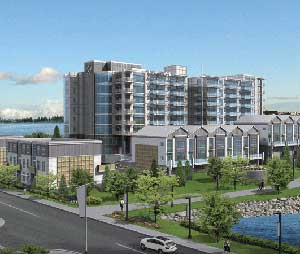 The development will consist of 112 units priced at approximately $300/square foot. The three styles of housing include a 9-story tower, 6 townhouses and 10 “marina homes.”