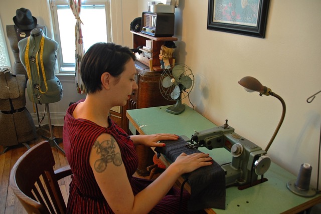 A typical day for Sarah Ayers will include any or all of the following: wig tape, Spanish music video shoots, bicycle rides, lunch with the staff of John Varvatos downtown, phone calls with United States military contractors, more phone calls with bicycle shop owners in Detroit and New York. As the proprietor of William and Bonnie—an alterations, tailoring, custom garments, and upholstery business—Ayers has built a unique career from a combination of old and new world skills.