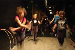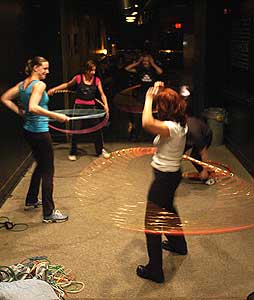 Jones, an avid hula-hooper, often brings her homemade hoops to class