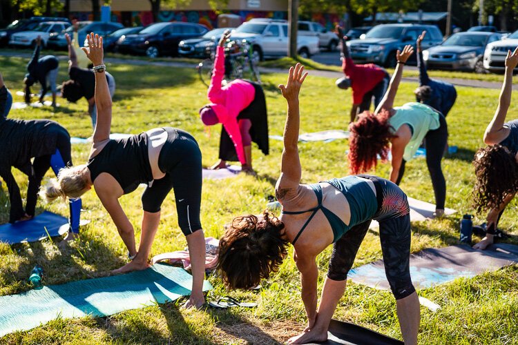 She began building relationships and soon created partnerships with Eastern Market Corporation, Sidewalk Detroit, schools, churches, and afterschool programs. She started a collaboration with VanDyke schools to teach elementary and middle school students about meditation and mindfulness. She’s also partnered with the Detroit Pistons to teach yoga in communities where the team has invested in refurbished neighborhood basketball courts.