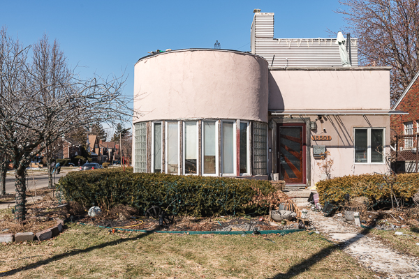 With its stucco siding and pastel color scheme, this house on East Outer Drive looks like it belongs in Miami more so Detroit. Like its Art Moderne brethren featured in our last list, it’s also distinguished by its curved forms.