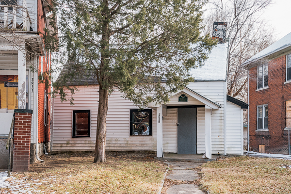 Essentially a wood cabin, it was built in 1830 by James Smith, a farmer, well before the area was annexed by the city of Detroit. There are some clues of the house’s age, including its odd angle relative to its neighbors and the uneven bricks from the chimney peeking out of the siding.