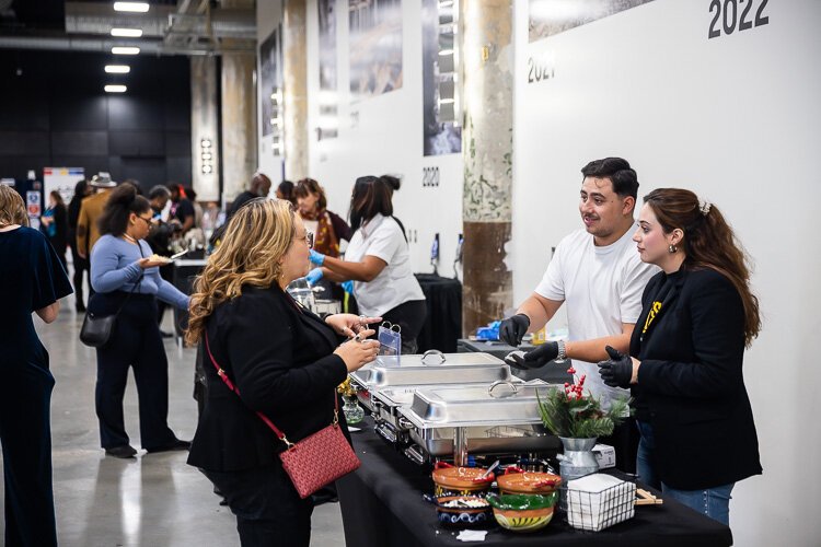 Music boomed, people mingled, and signature cocktails – including “The Executive,” “D21,” and “The Dirty D” – were sampled. Restaurants from some of the D21 neighborhoods served hot snacks, from cabbage and macaroni and cheese provided by Central Detroit Christian Community Development Corporation and a neighborhood resident; to tacos and churros from Armando’s; to sopes from La Jalisciense; and even samples of vegan marshmallows from Someday bakery and art gallery.