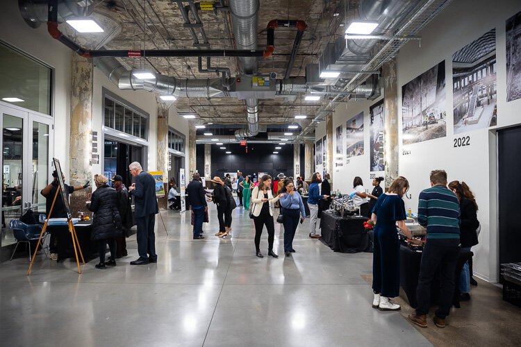 The hallways at NewLab, which by day serve as Michigan Central’s innovation hub, became a strolling reception with a D21 gallery lining the hallway, showcasing various neighborhood accomplishments.