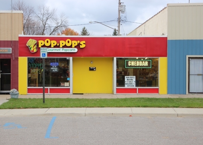 Pop-Pop’s Gourmet Popcorn’s colorful storefront in Midland
