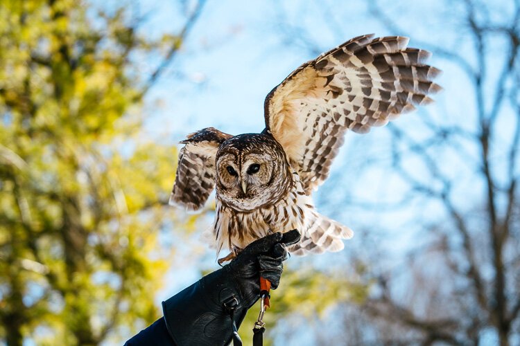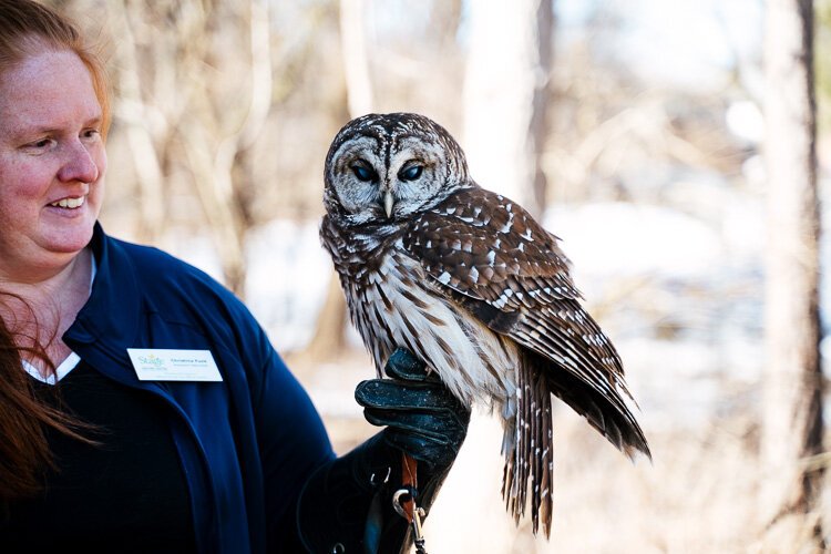 While owls in nature celebrate new life, there are still local opportunities to learn about the species. In Troy, five rehabilitated owls call Stage Nature Center home. Each was rescued in the wild elsewhere in the country and couldn’t heal enough to return to it. The center’s assistant naturalist and owl handler, Christina Funk, was pivotal in bringing the owls to the center in 2018 following the closure of their previous home, the Organization for Bat Conservation in Pontiac.