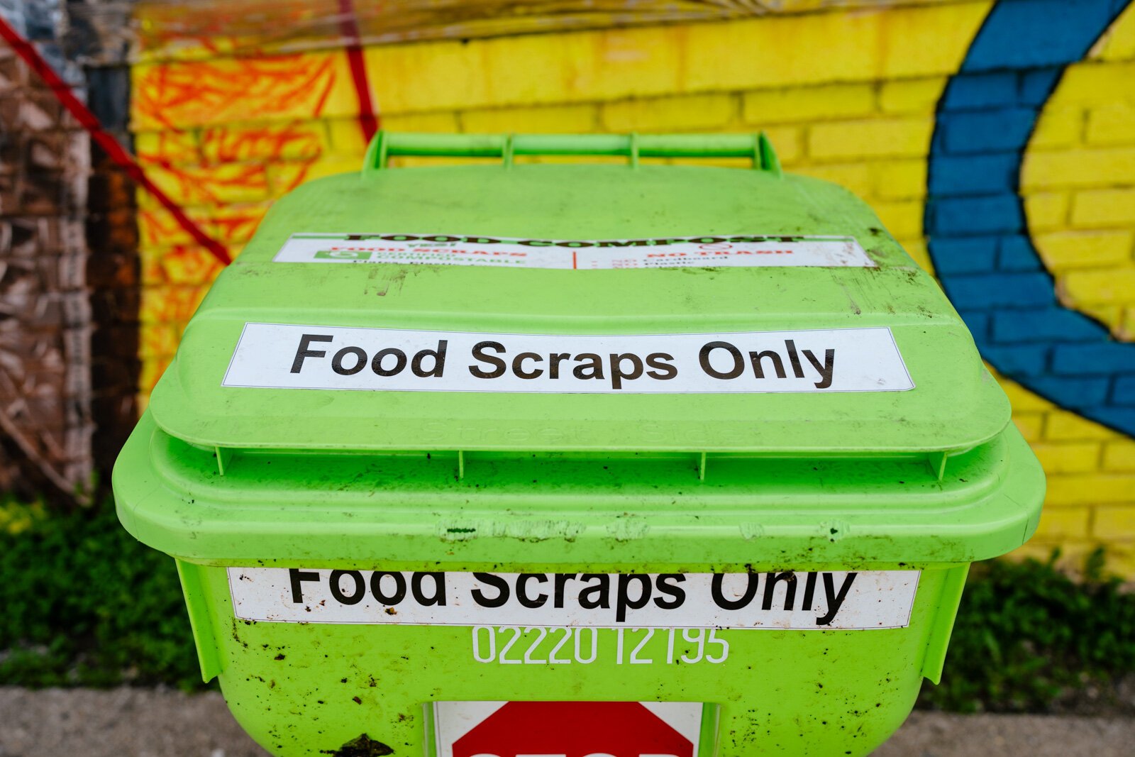 Nick Hagen – Sweet Potato Sensations’ green compost bin outside their Old Redford location.