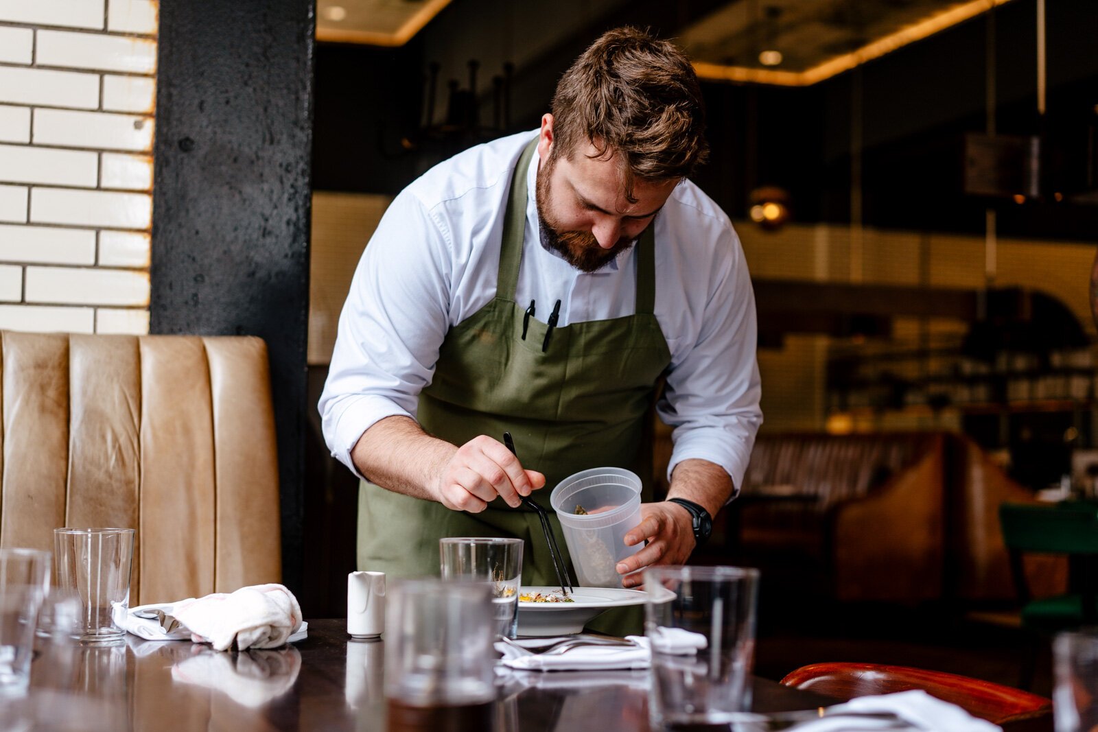 At the Apparatus Room inside the Detroit Foundation Hotel, executive chefs Ken Miller and Duncan Spangler are working to tighten operational processes amid a tight labor market due to COVID-19. In tandem with their overall efforts, The PLEDGE offers structured ways to be good stewards of the kitchen, Spangler says, something both chefs have long prioritized, whether it’s using all parts of the protein or vegetable, or reimagining the creation of a dish.