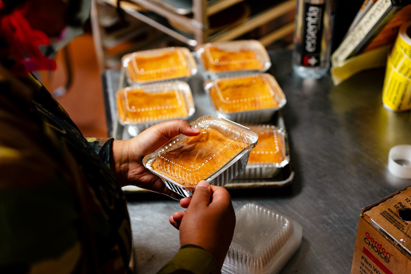 Nick Hagen – Staff packaging and labeling sweet potato cheesecakes.