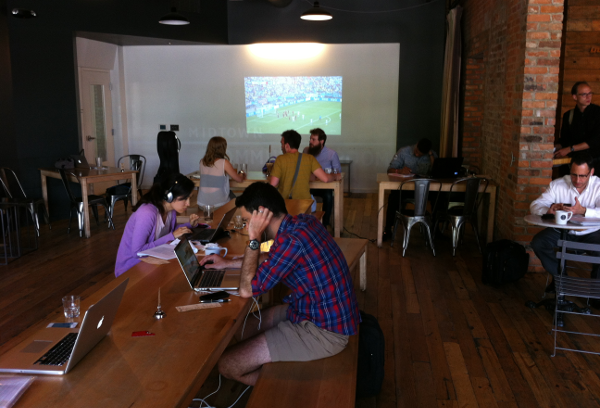 If you’re the type who actually thinks you can get some work done while watching a World Cup match, then Great Lakes Coffee is the place for you. Great Lakes is projecting games on its interior wall, so you can peak over your computer screen and catch the action all day long. GLC is also holding America-themed specials on days when the U.S. national team plays. When night time comes around, however, you better close that laptop and get ready for a more raucus viewing environment, especially if the Americans are playing.