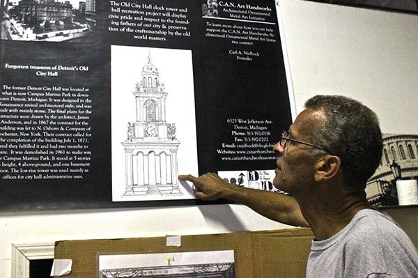 Another of Nielbock’s obsessions is the restoration of the old City Hall clock tower, built in 1871 and demolished in 1961, once standing with Campus Martius in its courtyard. His desire to rebuild this historic landmark reflects Nielbock’s belief that the building holds a kind of spiritual significance in the consciousness of the city.