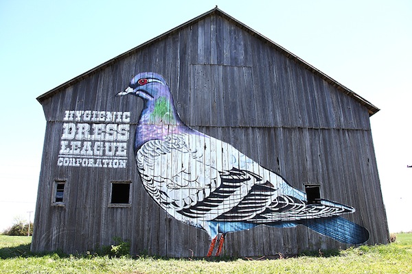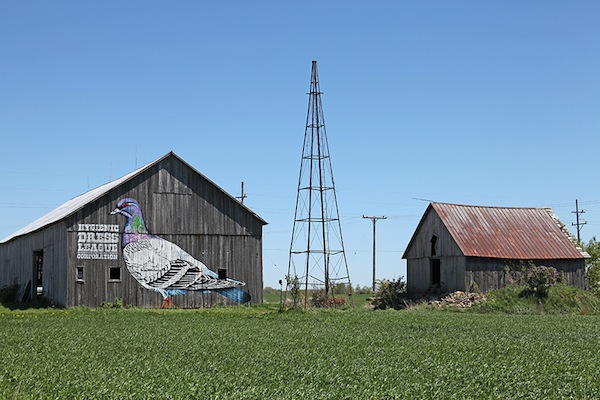 No, it didn’t snow, but sheets of cold rain did come sideways as I rolled upon the pigeon on the side of a barn and a group of wet artists huddled in a car with the engine running. Lousy weather meant we had to cut the first visit short. The second drive started with menacing clouds and a few droplets of rain, before the skies cleared and rays of sun led me to my destination. Much better. That was the Saturday of this second annual event that brings north and south together with food, drink and all around good times.