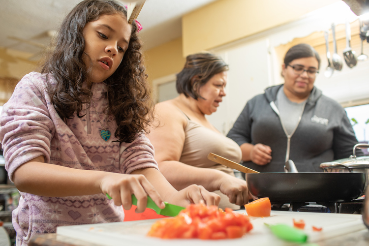 The mom invited Moreno to come back to the following weekend. When she returned, they laughed and deepened their connection over cookies. The mom, an immigrant from Guatemala, talked about the lack of access to culturally relevant foods and about how her kids just eat fast food now. That turned into a conversation about food access and the community garden.