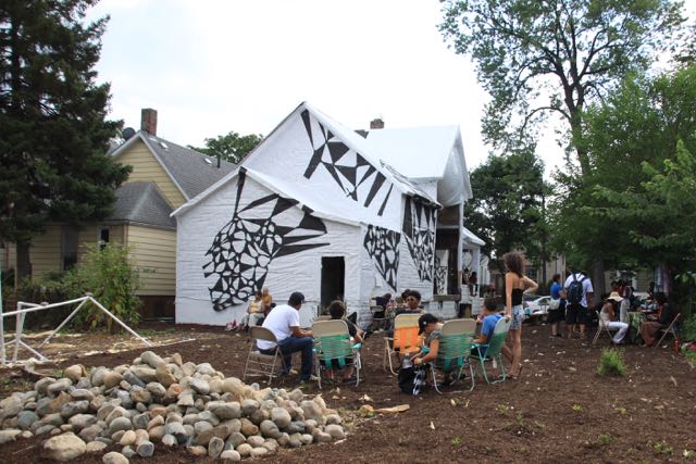 That was the easy part. McEwen and her team then turned to crowdfunding and grants from the Michigan State Housing Development Authority to complete the project. They raised funds to wrap the house in custom-patterned Tyvek, as well as repairing the roof and replacing the exterior sheathing.