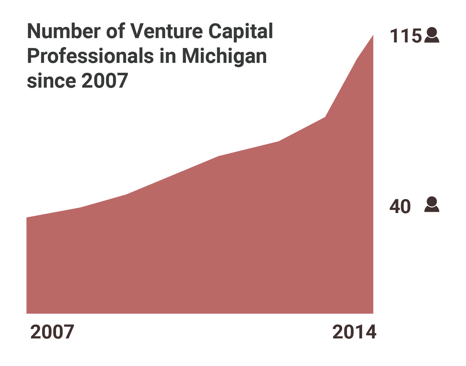 Michigan. The number has nearly tripled in the last eight years. Michigan had 40 venture capitalists in 2007. Last year it hit 115.