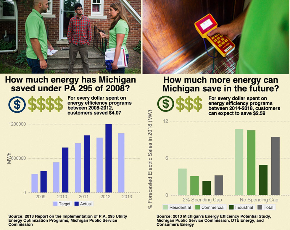 Campbell believes continuing the one percent target for electricity makes sense going forward. According to a 2013 energy efficiency potential study commissioned by the Michigan Public Service Commission, DTE Energy and Consumer’s Energy, the achievable potential for savings by 2023 is 15 percent of forecasted electricity sales and 13.4 percent of natural gas sales.