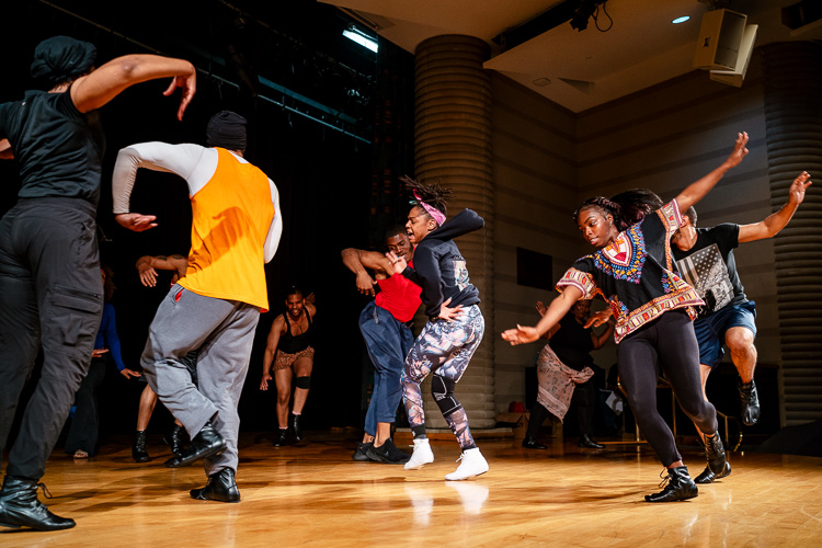 “When you look at Africa, when they are telling a story in their culture, all of it embodies the music, the dance, the speaking, all at once,” Yearby says. “The body can contradict the words in the dance, the dance can be at harmony with the words and the dance can be in dialogue with the words.”