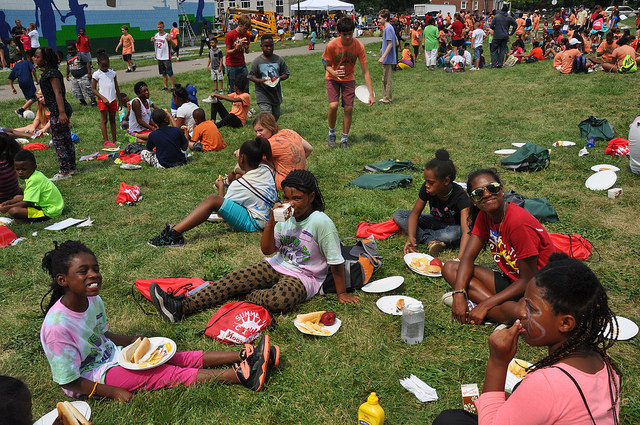 Oh, and there were all sorts of fun and games and food, too. Summer in the City gave away 500 backpacks to campers, each including a treasure map that lead them to activities throughout the park where school supplies were given away. A dozen junior volunteers (former Summer in the City campers who are growing into leadership positions in the organizations) were presented with their very own laptop computers, which they earned through their service to their community.