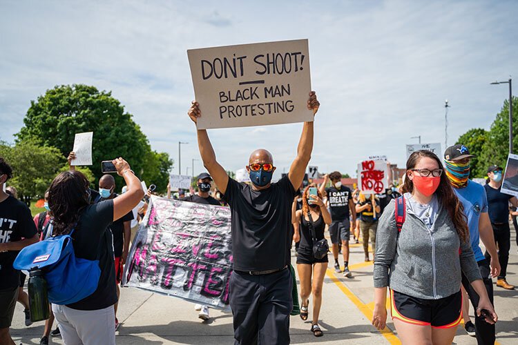 In my experience, there was a stark contrast between the main protest downtown and others I’ve attended — namely, the march across the Belle Isle bridge. Both protests were peaceful and full of energy, but the Belle Isle event also felt inviting and warm because there were more families and older folk as well.Â