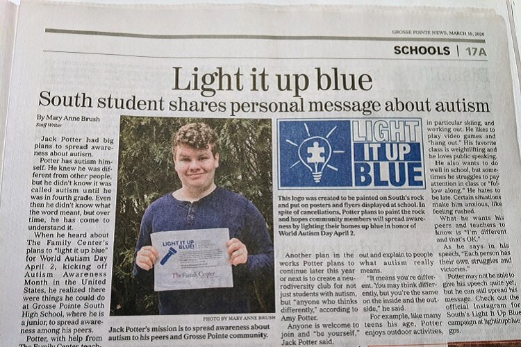 Because of the pandemic, Potter had to deal with the disappointment of a canceled summer trip to Greece and Italy with his mother, Amy, as well as the cancellation of the Light It Up Blue event he had planned at school for Autism Awareness Month in early April. The initiative, observed each year on World Autism Day (April 2), is focused on increasing awareness about autism by illuminating iconic landmarks with blue lights. Regardless, he was still able to make a little time for social activities.
